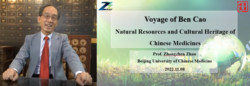 118日,2022中国APEC合作基金“传统药物科技创新的监管科学与国际共享”国际研讨会以视频会议的形式召开,赵中振教授在大会上作题为《Voyage of Ben Cao——Natural Resources and Cultural Heritage of Chinese Medicines(《本草无疆——谈中药的自然资源和文化资源》)的主旨报告。